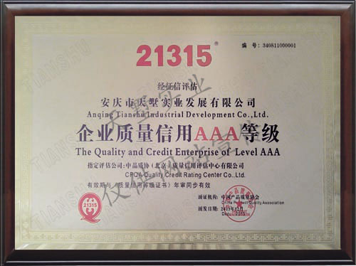 21315全國質量信用AAA等級