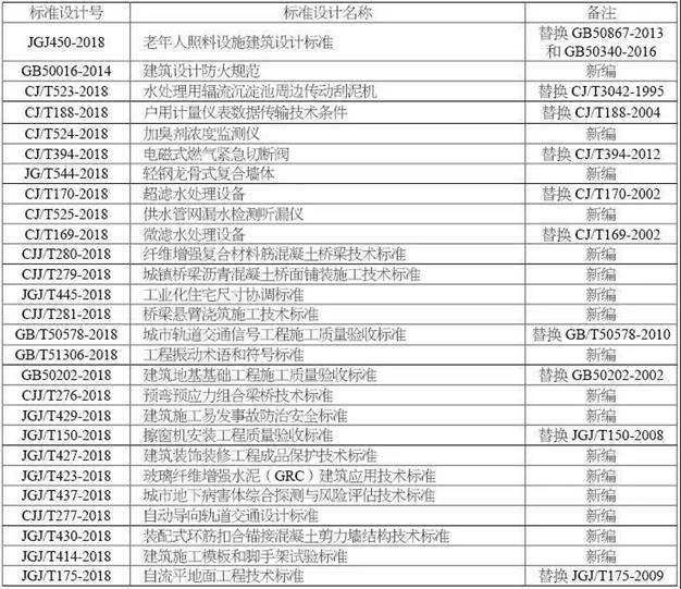 2018年10月起實(shí)施的工程建設(shè)標(biāo)準(zhǔn)