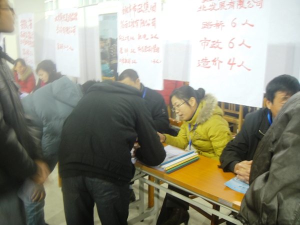 2009年12月12日,安徽交通職業技術學院舉辦“2010屆畢業生校園招聘會”,該院畢業生一直以來因其基礎知識扎實,動手能力強受到我公司人力資源部門青睞。為給畢業生一個放飛夢想、暢想青春的舞臺,我公司非常重視這次招聘會,欣然應邀參會選拔優秀人才。本次招聘主要是路橋、造價和市政專業人員。招聘會上學生們氣氛活躍,咨詢和報名非常踴躍。