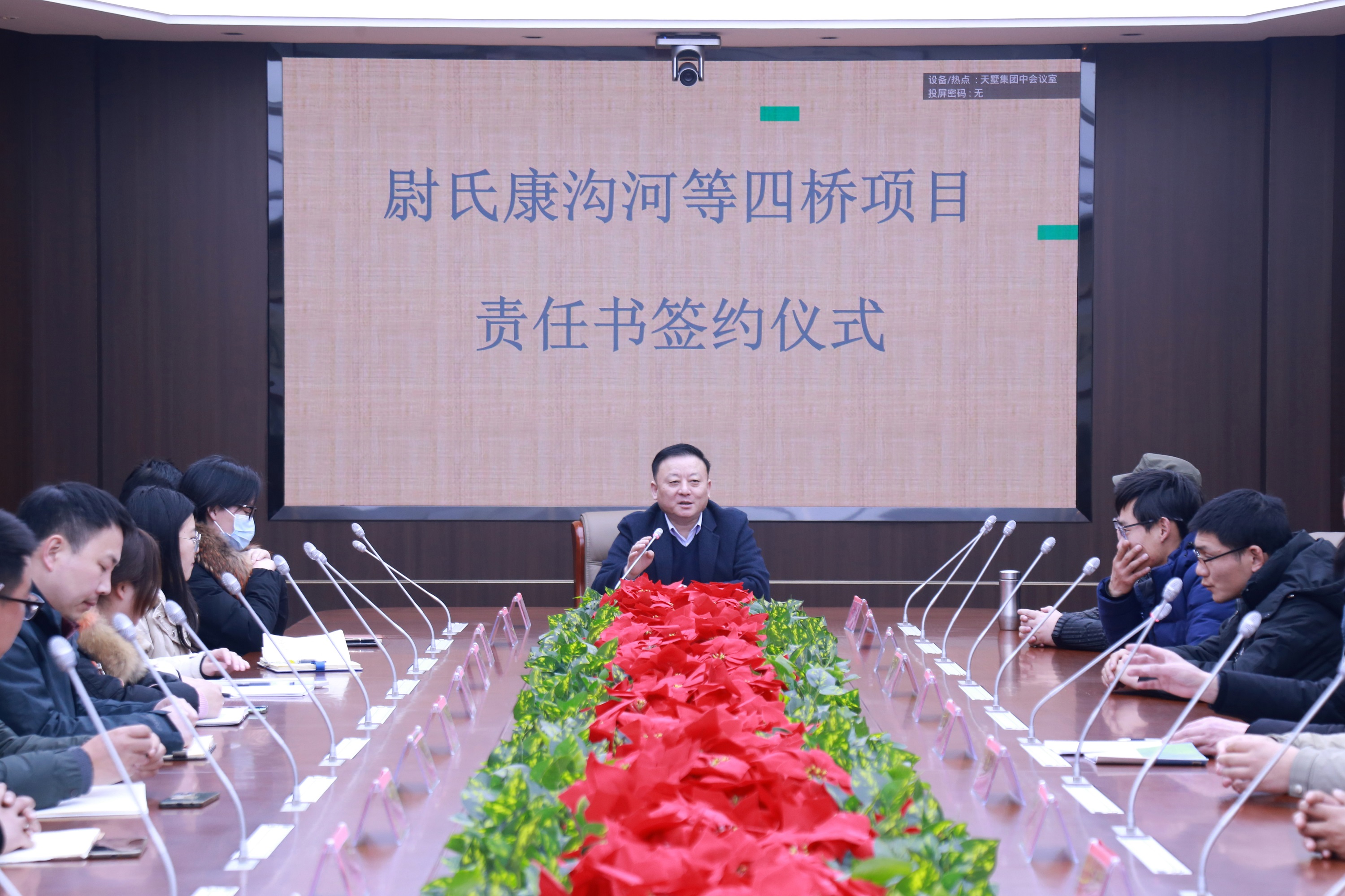2023年1月30日上午,集團公司在7樓中會議室舉行尉氏康溝橋等四橋項目目標(biāo)責(zé)任書簽約儀式,本次簽約儀式由集團公司副總張勤飛主持,康溝橋項目部管理人員及公司中高級管理人員參會,集團公司董事長出席儀式并致辭。