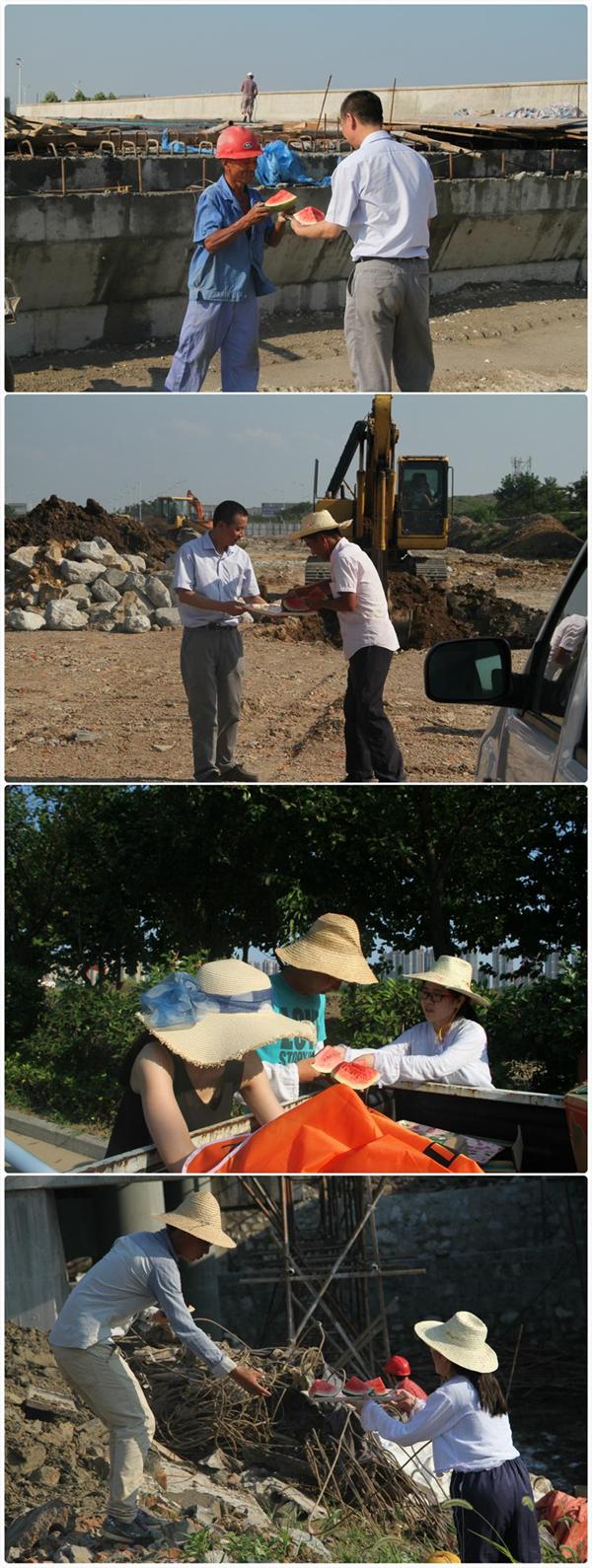 本周以來,我市開啟高溫酷暑模式,烈日炎炎,考驗著堅守在項目一線的建設者們。為給一線施工作業人員解暑降溫,7月30日下午,公司工會主席張勤飛分別來到潛江路二期、新河景觀、S228等在建工程現場,把西瓜送到奮戰在高溫一線的施工人員手中,給一線員工送上夏日的一片清涼。