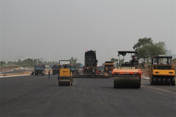道路南段面層瀝青攤鋪現場
