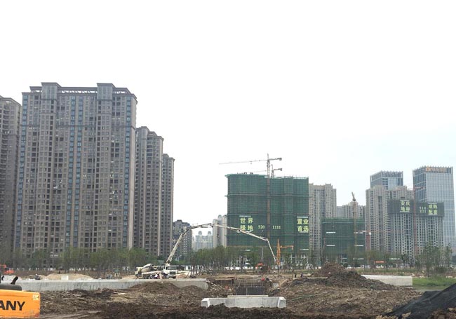 一進(jìn)入施工現(xiàn)場(chǎng),偌大的施工場(chǎng)景令人振奮: 十多輛工程機(jī)械緊張作業(yè),挖掘機(jī)、推土機(jī)的轟鳴聲震耳欲聾、重型卡車來回穿梭蕩起滾滾煙塵,工人緊張有序的加緊施工,茫然不覺外界的嘈雜。