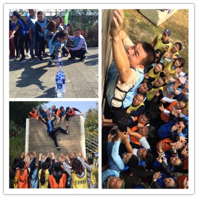 空中抓杠訓(xùn)練之后,就是今天上午最后一項(xiàng)-畢業(yè)墻。需要我們所有參訓(xùn)隊(duì)員共同努力才能完成的挑戰(zhàn)項(xiàng)目。爭(zhēng)取在最短的時(shí)間內(nèi)成功翻越一堵4米的高墻。這對(duì)于我們來(lái)說(shuō)也是個(gè)挑戰(zhàn)。隨著教練一聲哨響,隊(duì)員們有的給出肩膀,有的伸出雙臂,一個(gè)個(gè)有力的肩膀、信任的眼神,一張張憋足了勁而漲紅了的臉和紅色臉龐上的汗水,每個(gè)人都借助別人的力量向上爬,群體中的人都是互動(dòng)的,幫助他人同時(shí)也在幫助自己。此時(shí),耳畔是加油鼓勁的吶喊聲,大家心往一處想,勁往一處使,為了共同目標(biāo)-翻越橫亙?cè)谖覀兠媲暗倪@座“大山”。它讓我們身臨其境地體會(huì)到了“團(tuán)結(jié)就是力量”不僅僅是一句口號(hào),它還是眾志成城的真實(shí)寫照。