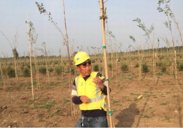 5月9日,工作人員正在對現場苗木進行RTK定位。